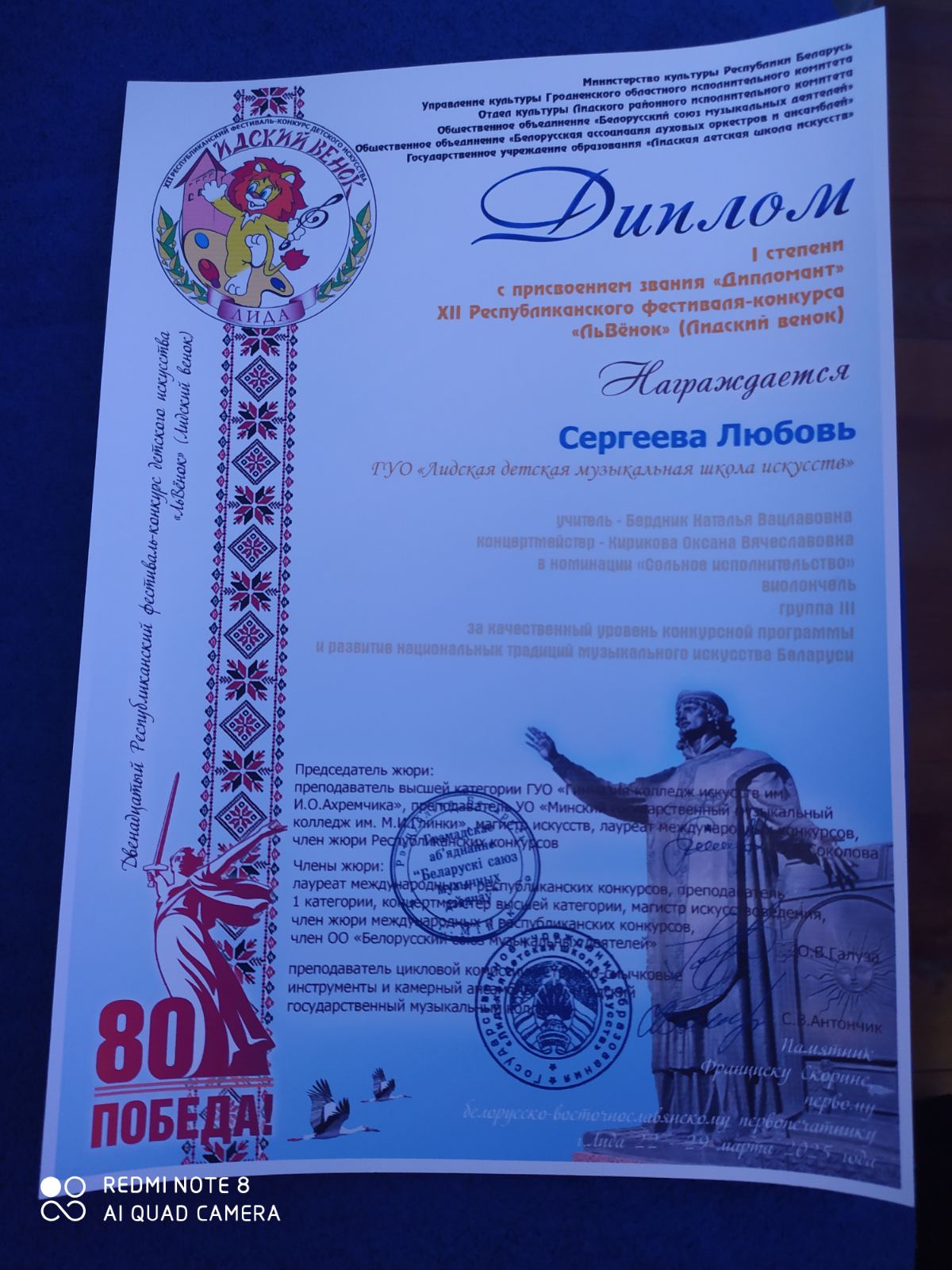 🦁Сергеева Любовь диплом I степени с присвоением звания “Дипломант”,