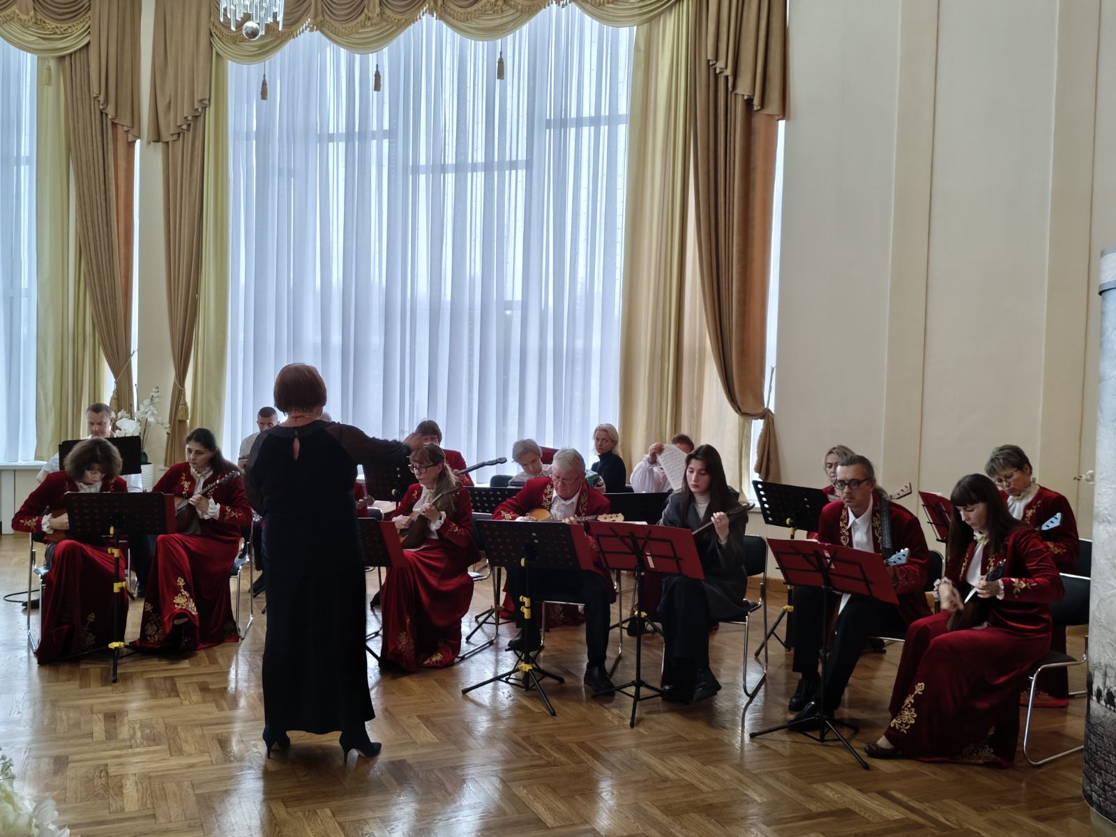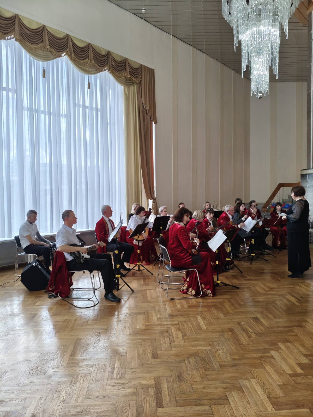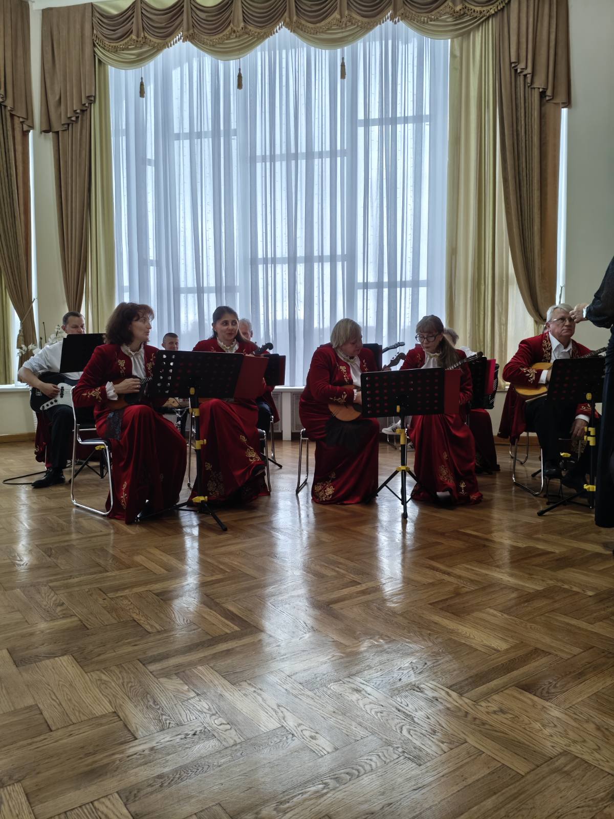 В холле Дворца культуры праздничное настроение для все присутствующих работников сферы культуры Лидчины создавал народный оркестр русских народных инструментов под руководством Галины Огарок.