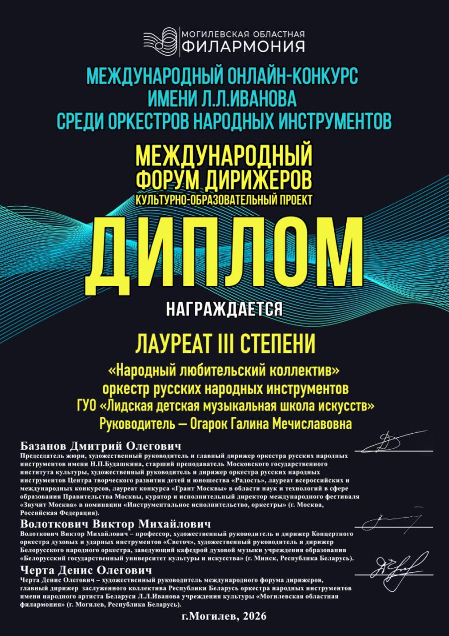 💐Поздравляем победителей международного онлайн-конкурса имени Л.Л. Иванова среди оркестров народных инструментов, международного форума дирижеров культурно-образовательного проекта г. Могилев: