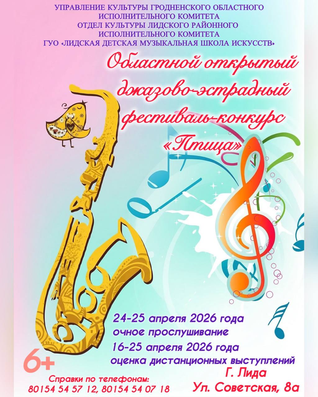 🎤24-25 апреля 2026 года состоится очное прослушивание конкурсантов областного открытого джазово-эстрадного фестиваля-конкурса «Птица».