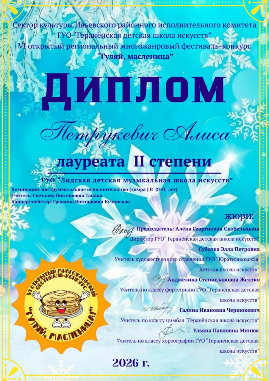 Петрукевич Алиса – лауреат ІІ степени, учитель Танана С.В.