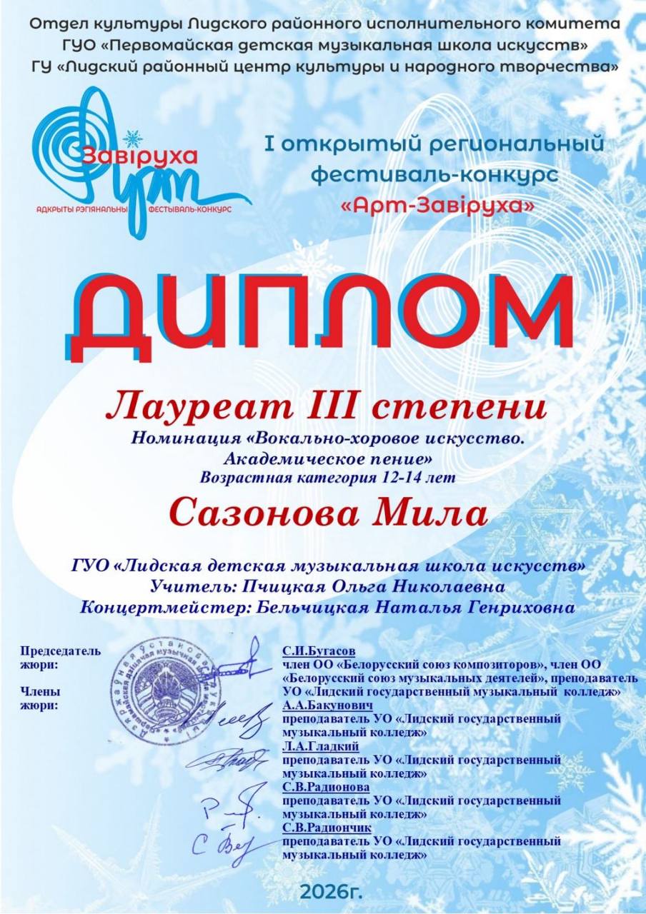 🎉Поздравляем победителей I открытого регионального фестиваля-конкурса «Арт-Завіруха» г. Первомайск: