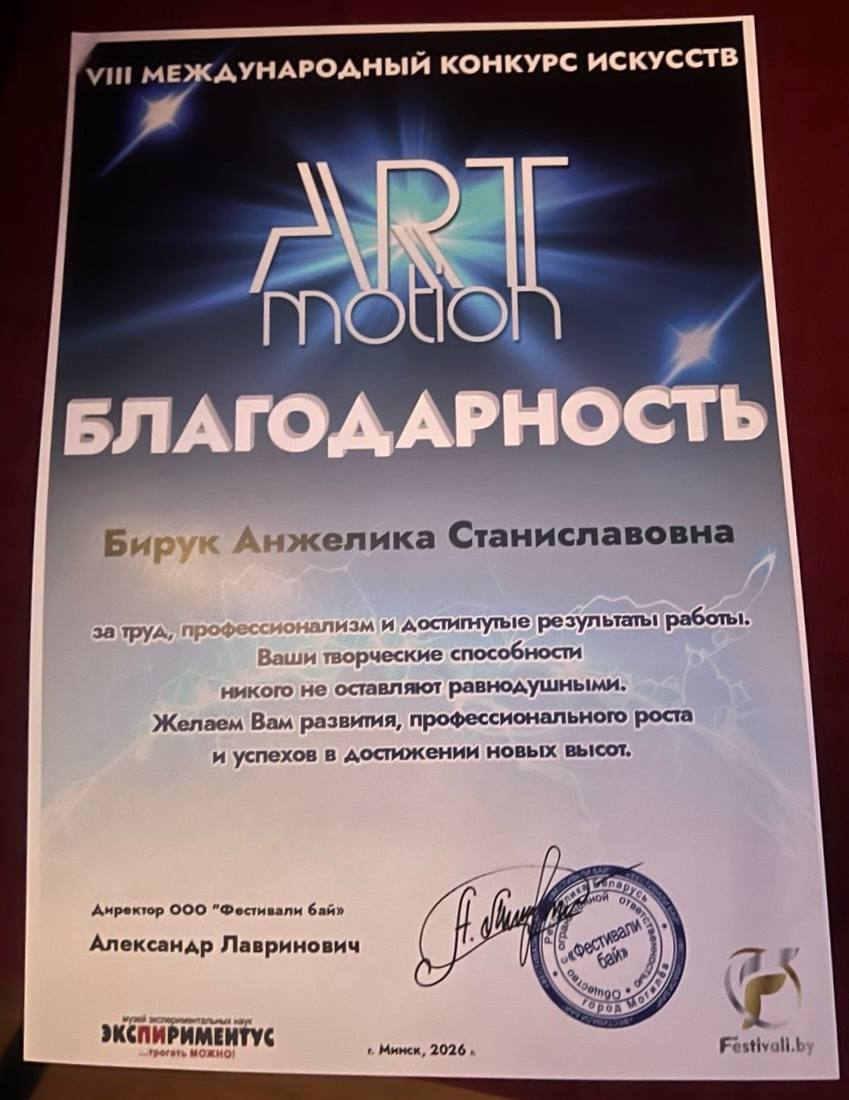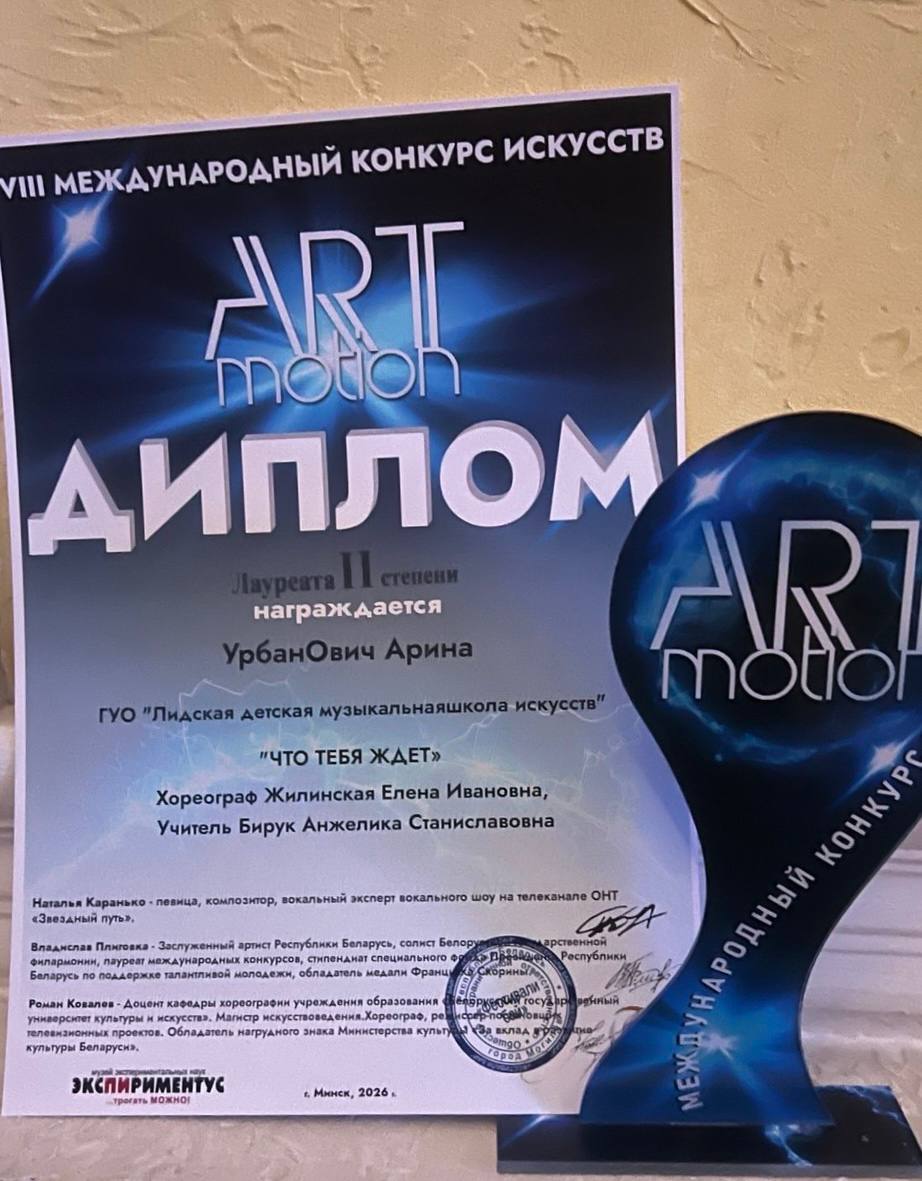 💐Поздравляем учащуюся и учителей Лидской детской музыкальной школы искусств с победой в VIII международном конкурсе искусств «ART motion»(г. Минск):
