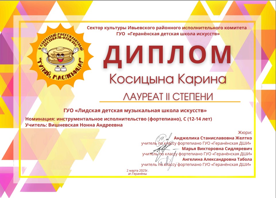 Поздравляем наших победителей открытого многожанрового фестиваля-конкурса “Гуляй, Масленица!”, который прошел 1 марта в Гераненской детской школе искусств. Участники не только соревновались в творчестве, но и приняли участие в мастер-классе соломоплетения и отведали вкуснейших масленичных блинов!